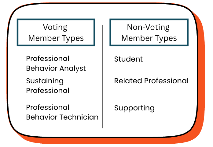 3 Year Membership. Open to all people who meet the education level requirement and are eligible (i.e., meet all legal, regulatory, and practice requirements) to practice or teach behavior analysis in the country/state/territory where the individual practices. Voting member type.