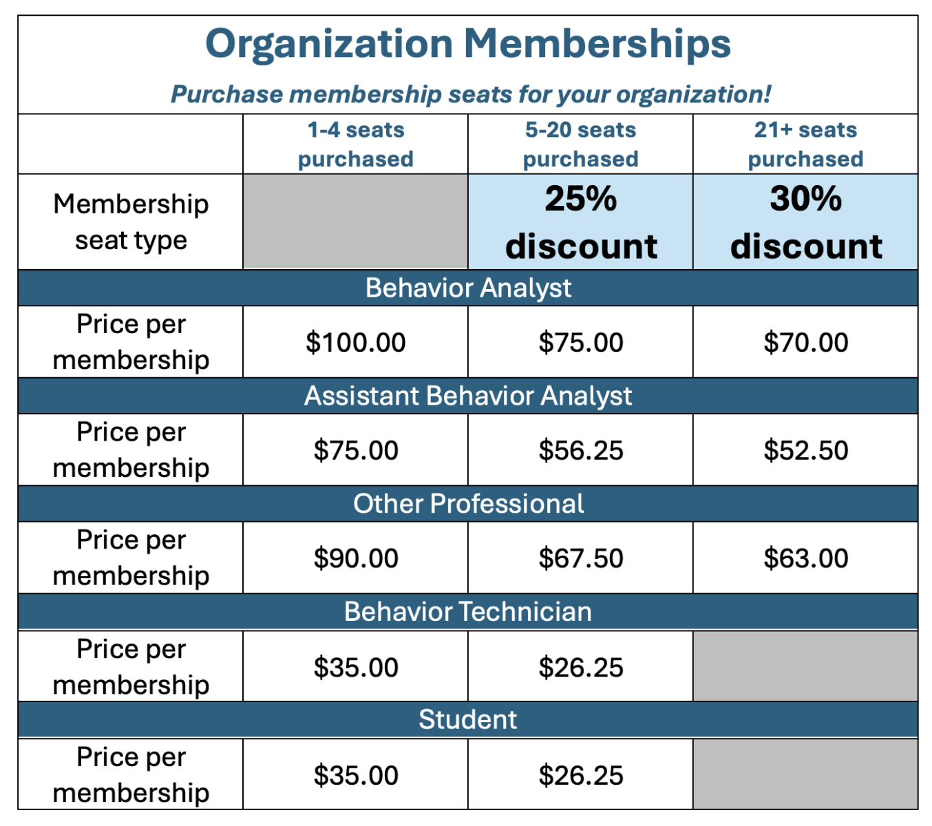 Tiered Discounts for Professional Behavior Analyst, Professional Behavior Technician, Related Professional or Student/Trainee Memberships